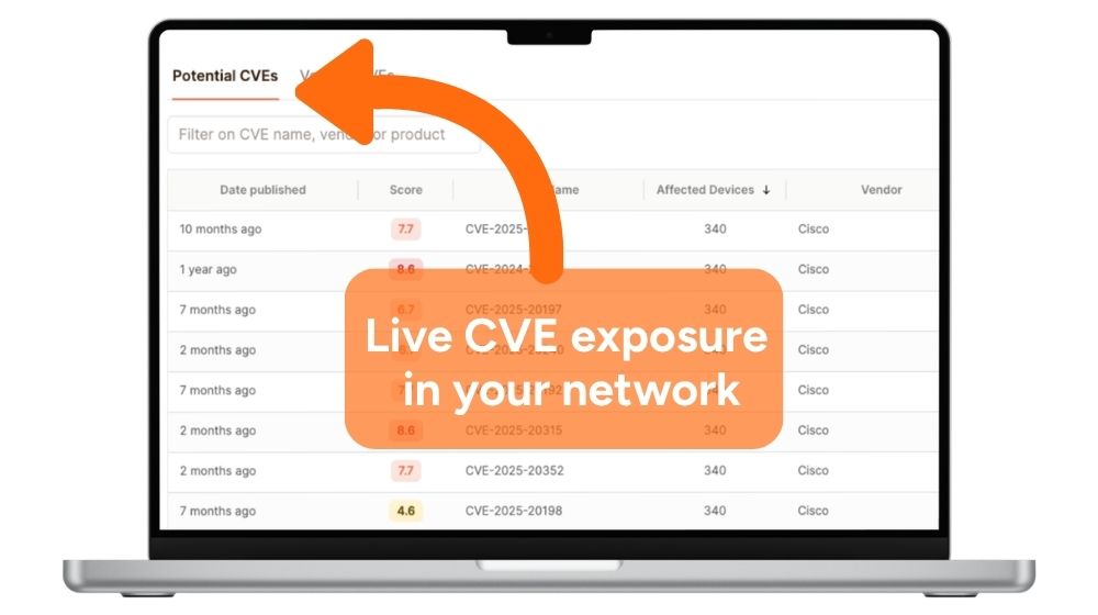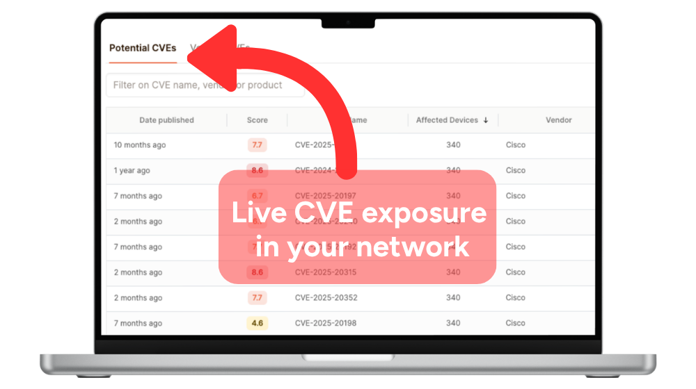 We match known CVEs directly to your devices based on OS and version data.